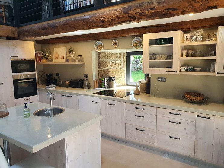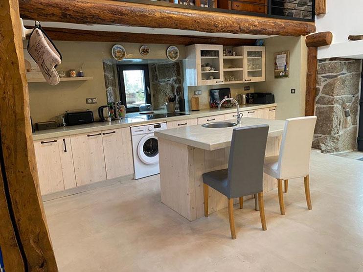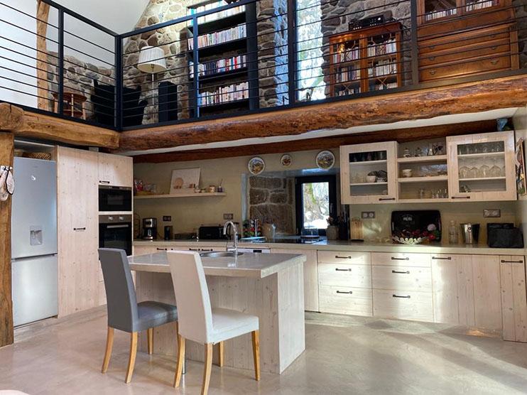 Au rez-de-chaussée, salle à manger / salon détente de 75 m², avec grande cuisine dînatoire entièrement équipée, ouverte donnant sur la cour.