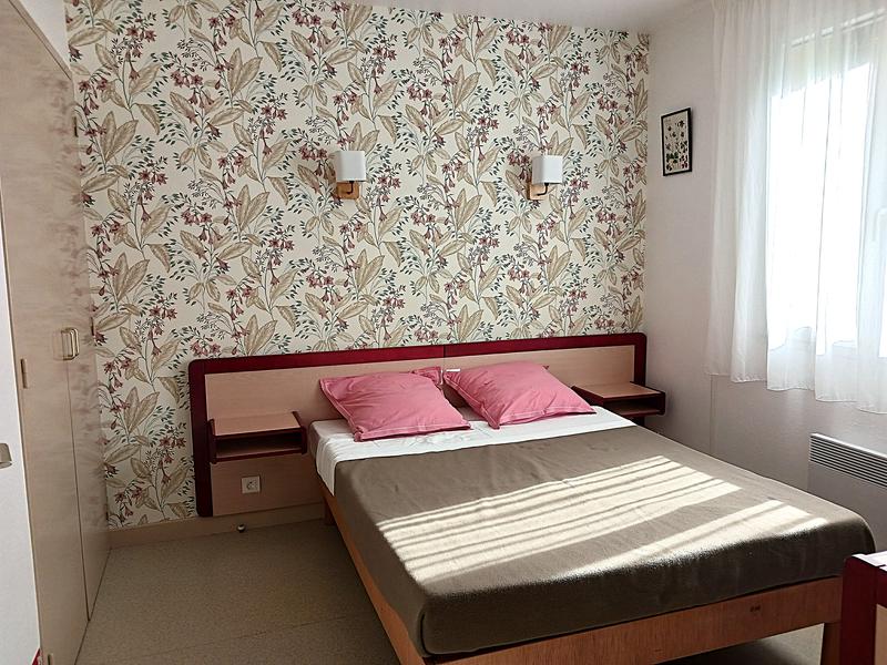 Gîte de 37,5 m2 + terrasse couverte, 1 chambre avec lit double, 1 chambre avec 2 lits 1 pers, séjour avec cuisine équipée, salle de bain, WC et entrée.