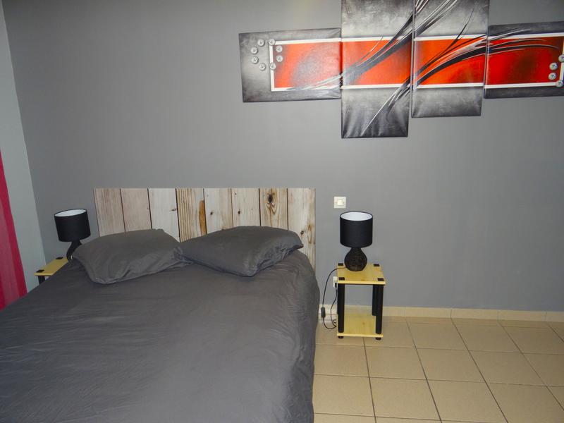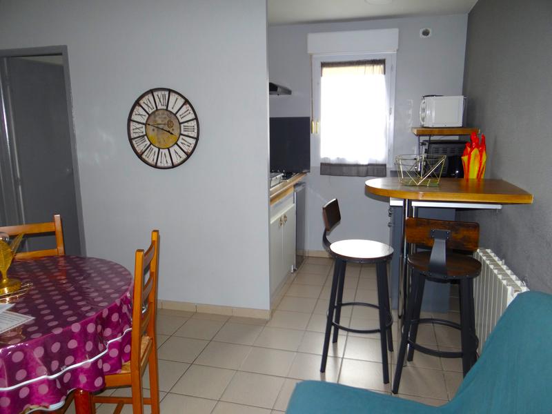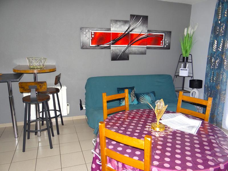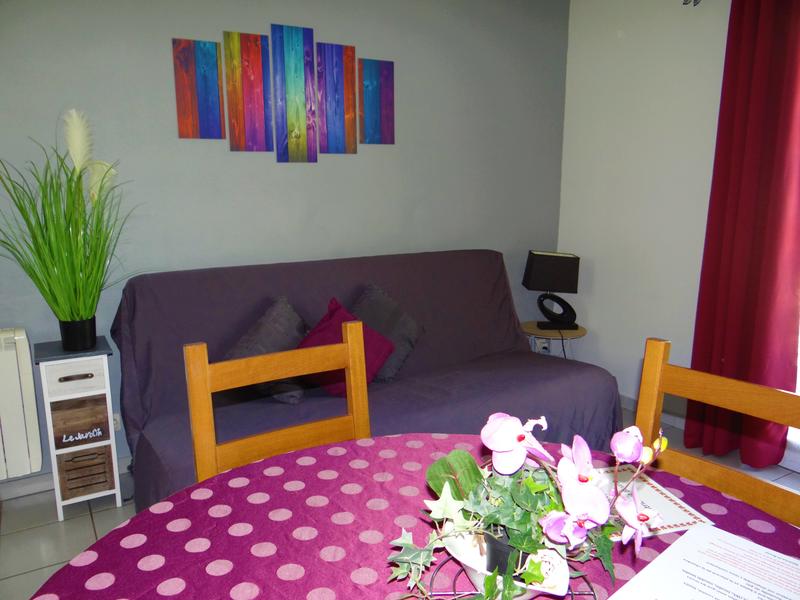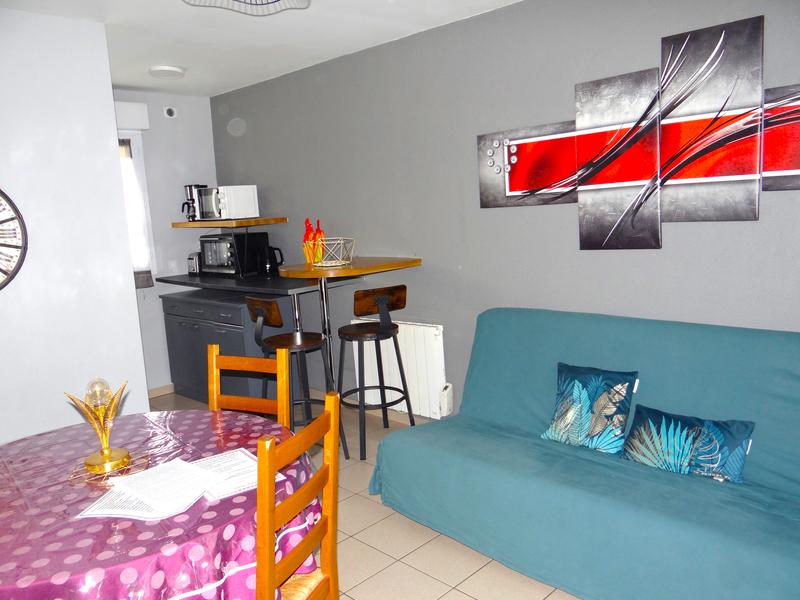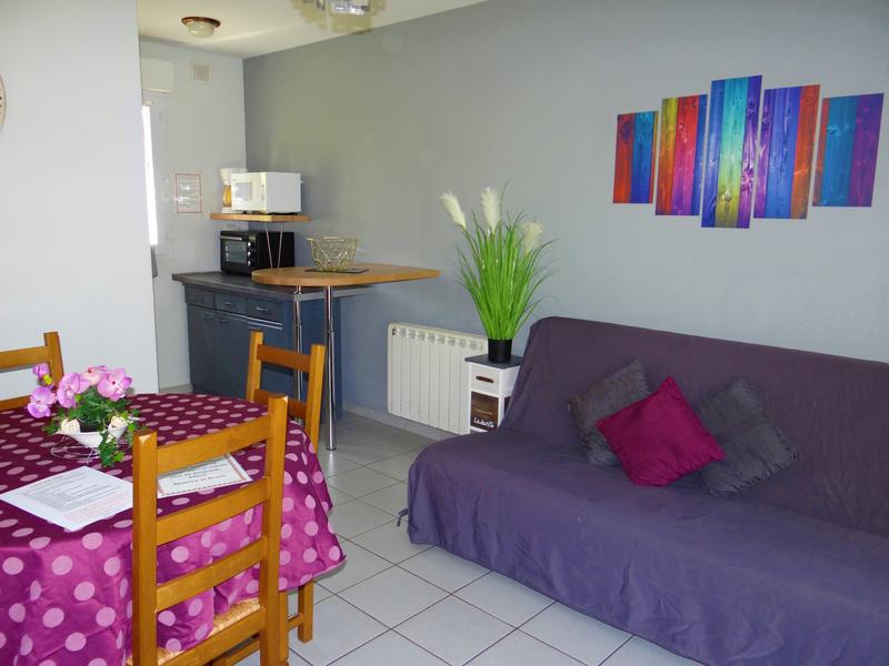 Maison individuelle plain pied (3 pers. maximum) comprenant un séjour avec espace cuisine et espace salon. Canapé convertible, TV, planche et fer à repasser, une chambre avec un lit 2 pers.., salle d’eau, WC douche , chauffage électrique. Salon de jardin. Terrasse en bois, . Wifi. Stationnement facile.