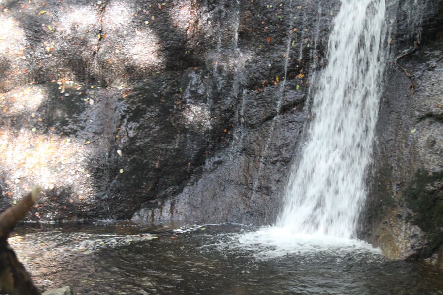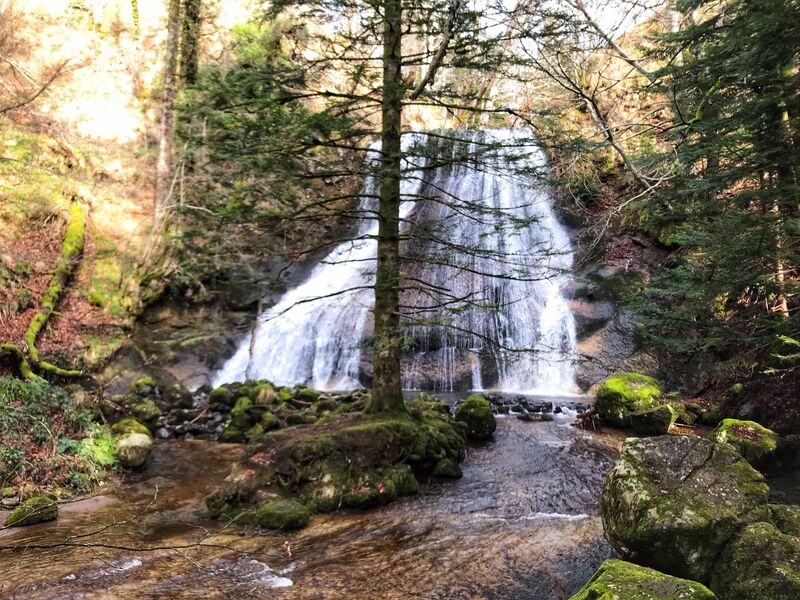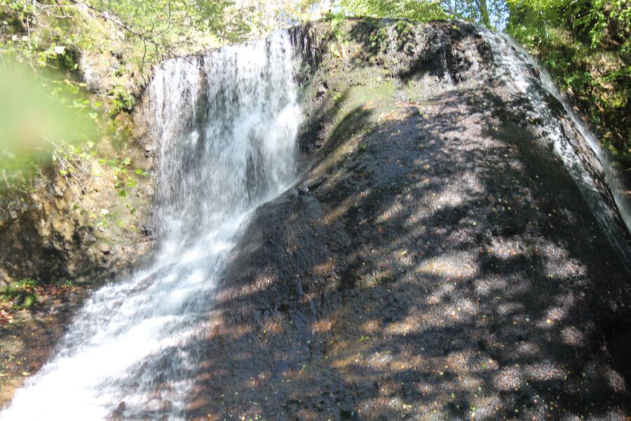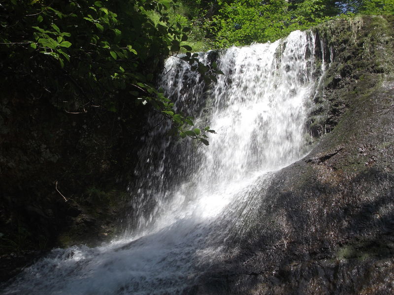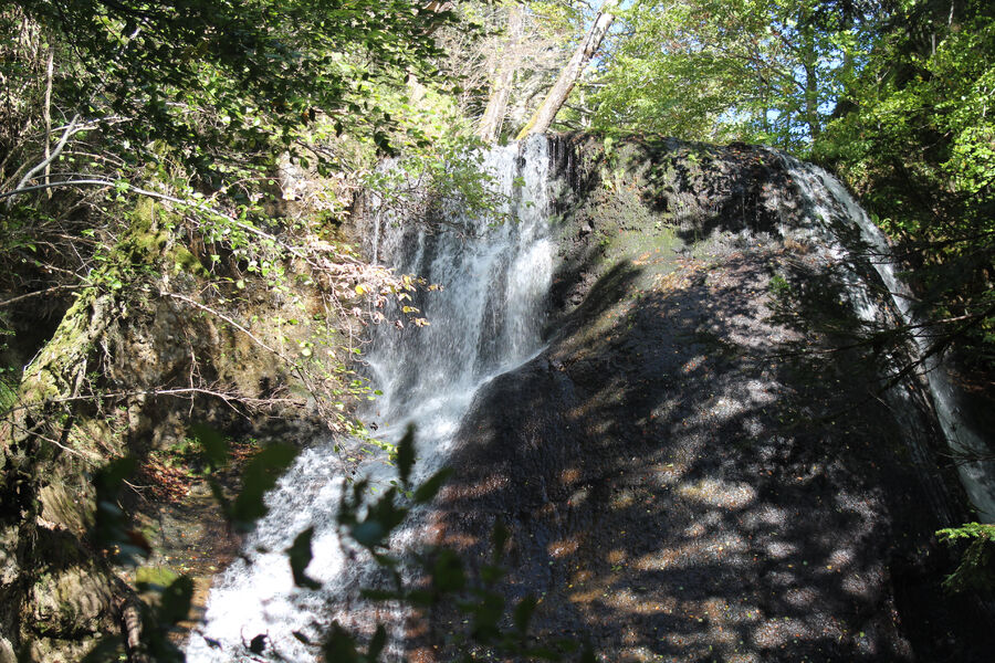 La cascade de la Pissa del Coin , située sur la commune du Fau, au nord-est du hameau de la Bastide. Haute de 15m, impressionnante par sa largeur et son débit.