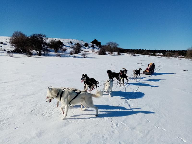 Balade découverte en chiens de traîneaux dans la forêt de la Pinatelle ou en montagne, confortablement installé à bord d'un traîneau tracté par des chiens. Initiation à la conduite d'attelage : pour les amateurs de sensations fortes et visite du chenil.