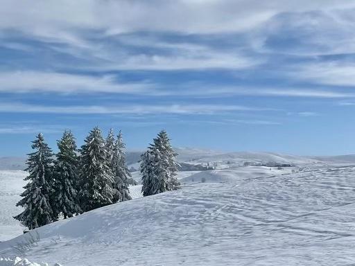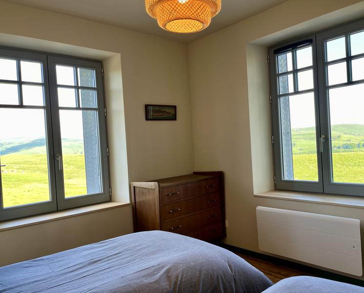 Maison très confortable perchée à 1 200 mètres d’altitude, sur le plateau du Cézallier, face aux collines et aux monts du Cantal. Vues magnifiques dans toutes les pièces. Totalement rénovée dans son style 1950.