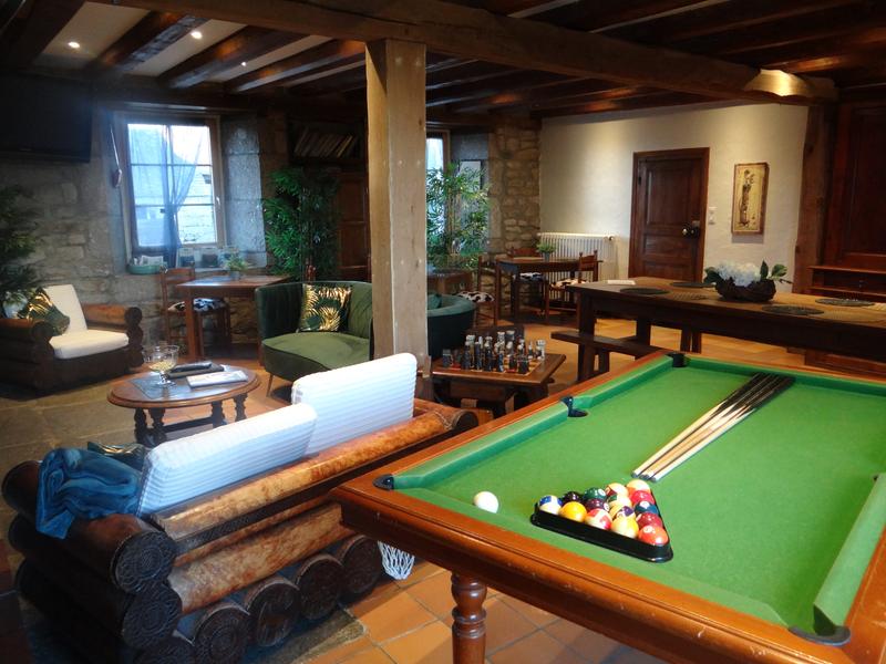 Grand séjour avec cheminée, une bibliothèque, un billard sont à disposition ainsi que les chaînes Canal + Piscine chauffée et jacuzzi partagés, à disposition gratuitement. Golf practice sur place.
