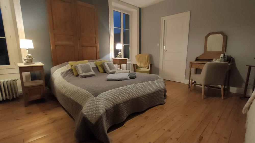 4 grandes chambres dont 2 familiales, jardin exposé plein sud, avec vue sur toute la vallée, une grange aménagée avec des équipements de détente (bibliothèque, billard, baby-foot, salon au coin du feu, jeux de société..), un espace bien-être avec sauna, jacuzzi, lit hydromassant, une table d'hôtes pour partager et déguster des spécialités (sur réservation). location VAE. moments de partage et d'ateliersautour de la céramique, la méditation, les jeux, les sorties nature…