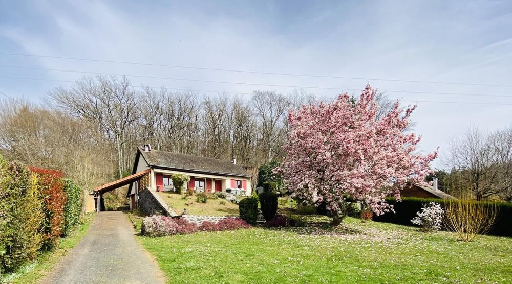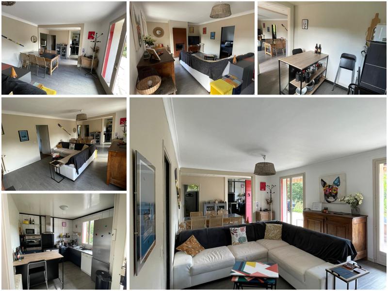 Maison de plain-pied à 100m du lac avec cuisine toute équipée, salle de douche avec WC, salon avec coin TV et cheminé, véranda (billard, canapé, fléchettes), Wi-Fi, jeux enfants, 3 chambres (8 couchages)