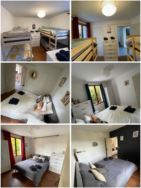 3 chambres (8 couchages) : chambre 1 : lit double Queen size ; chambre 2 : lit double queen size ; chambre 3 : 4 couchages simples (2×2 lits superposés)