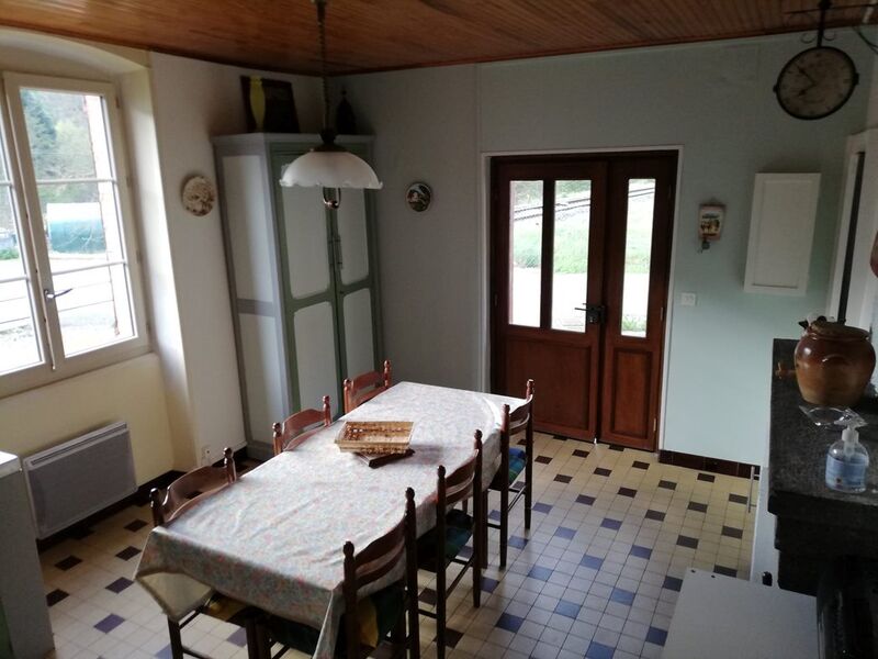 A 6km de Massiac et de l’autoroute A75, cette ancienne maison de garde-barrière, rénovée en 2021, est située au cœur de la vallée de l’Alagnon, avec chemins et bois à proximité.