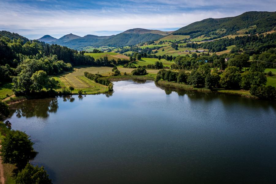 Venez pêcher au lac des cascades en profitant d'une vue imprenable sur le Puy Mary au cœur de la vallée de la petite rhue.