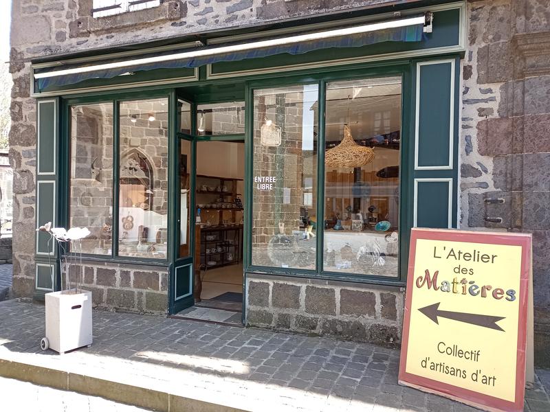 L'Atelier des Matières vous invite à découvrir les savoir-faire des Métiers d'Art Cantaliens en proposant à la vente un choix de pièces singulières façonnées en pièces uniques ou petites séries. 2 Place Géraud Maigné 15140 SALERS (place de l'Eglise) Art Mural, Art de la table, Luminaires, Bijoux, Cosmétiques, Poterie, Maroquinerie, Mosaïque, Tourneur sur bois, Vannerie, Emaillage sur lave, Céramique, Sculptures… Ouvert de Mi-avril à Mi-Octobre – 10h30 -13h/14h -19h Non stop haute saison"