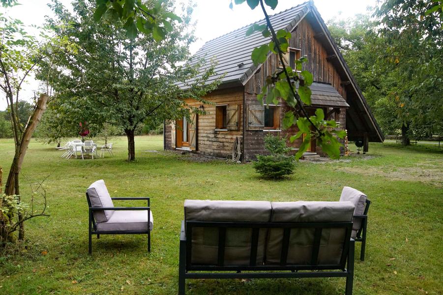 En bordure du hameau de Sarran et entourée de prés, maison en bois confortable et lumineuse de 80 m² disposant des équipements de confort pour un séjour en toute saison. Espace séjour en rez-de-chaussée ouvert sur jardin ombragé et pré de 3000 m².