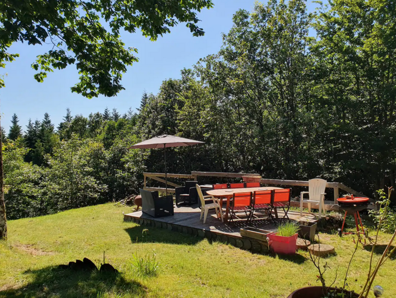 Réveillez-vous en compagnie des biches, martres, écureuils, avec le seul bruit du chant des oiseaux ou du son lointain des cloches des vaches salers. Le logement est situé en lisière de forêt, à 15 minutes de tous commerces. L'extérieur est très paisible avec coin repas et détente, braséro, jeux de société et de plein air. 3 chambres dont 1 avec salle d'eau, une cuisine équipée, une salle de bain, un salon 2 canapés avec vue dans la forêt à 180°, 1 véranda avec table à manger, sensation d'être dehors, même en hiver mais au chaud ! 2 terrasses, parking privé. Pas de vis à vis.