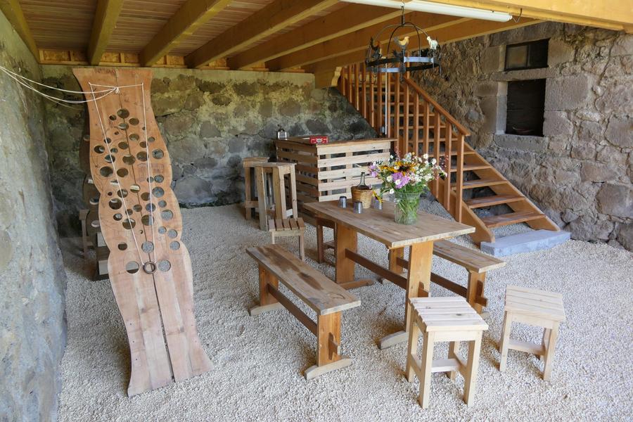 Un parking privé et SURTOUT un préau de 80 m² avec des jeux traditionnels, des livres dans une mezzanine, une balançoire, un bar, une table pour manger, des fauteuils, des chaises longues et un barbecue sont inclus dans la location. Cet espace adossé à une grangeoune permet de se mettre à l'abri des rayons chauds du soleil si besoin comme des passages pluvieux tout en restant en plein air (sans supplément tarifaire).