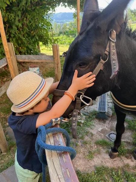 Possibilité de balades avec nos 2 ânesses : balade avec les deux ânesses accompagnée par nos soins (30€ /h) ou balade non accompagnée (30€ pour la demi-journée ou 50 € la journée). Nous fournissons les bâts pour porter les enfants, coussins et cartes IGN.