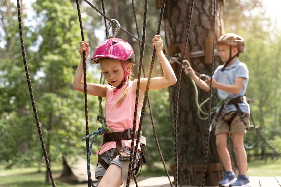 Venez découvrir notre parc aventure avec 5 parcours, et un espace filet.