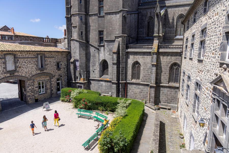 Les salles voûtées primitives du palais servent de cadre aux collections archéologiques, la chapelle privée de l’évêque à la statuaire religieuse du XIIe au XIXe siècle, la salle capitulaire au trésor de la cathédrale, et les anciens appartements au mobilier et à l’art populaire de Haute-Auvergne.