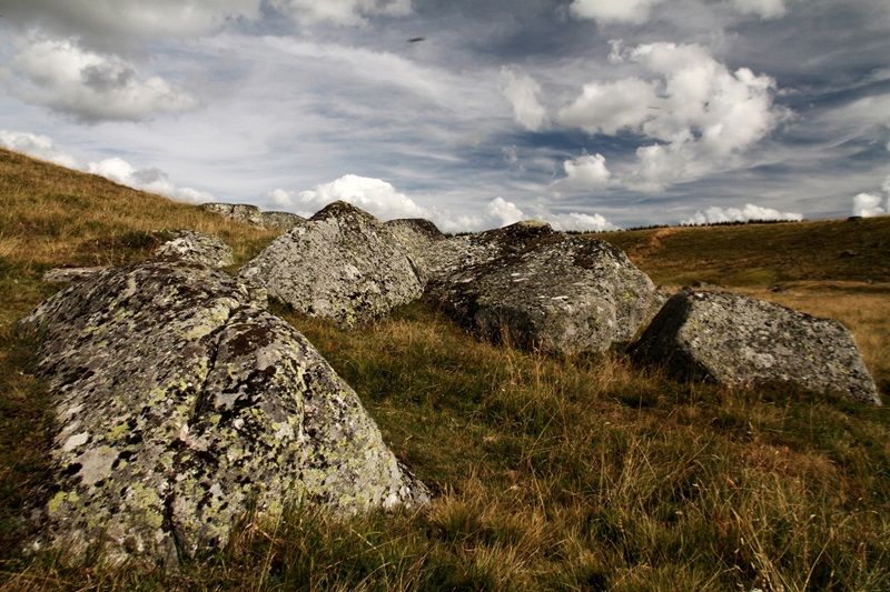 Parc Naturel Régional de l'Aubrac : un haut plateau ouvert, ondulé, ponctué de blocs granitiques et de troupeaux, de lacs bordés de murets...Un lieu où le regard se perd et où le promeneur se plaît.