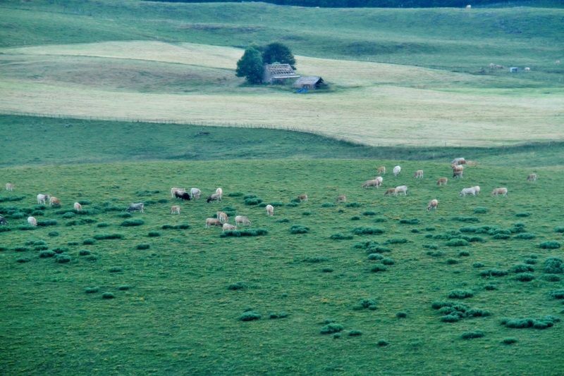 D’une altitude moyenne de 1000 mètres, l’Aubrac culmine à 1469 mètres au signal de Mailhebiau et 1440 mètres aux Trucs d’Aubrac. Forêts et immenses pâturages se partagent l’espace.