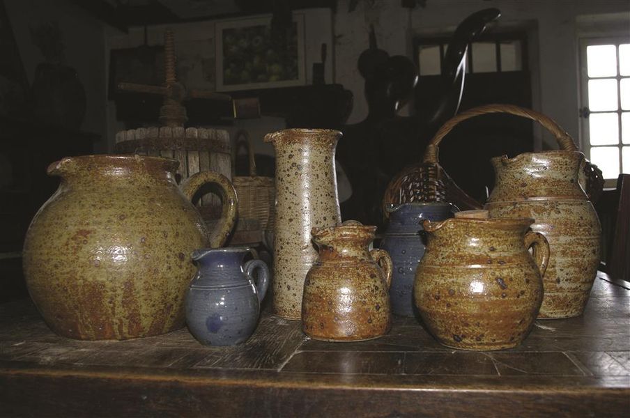 Poterie artisanale en grès à usage domestique ou ornemental & maroquinerie fantaisie cuir et synthétique (sacs, portefeuilles, portes-monnaie, ceintures…).