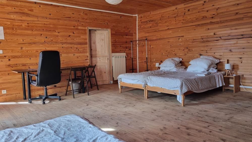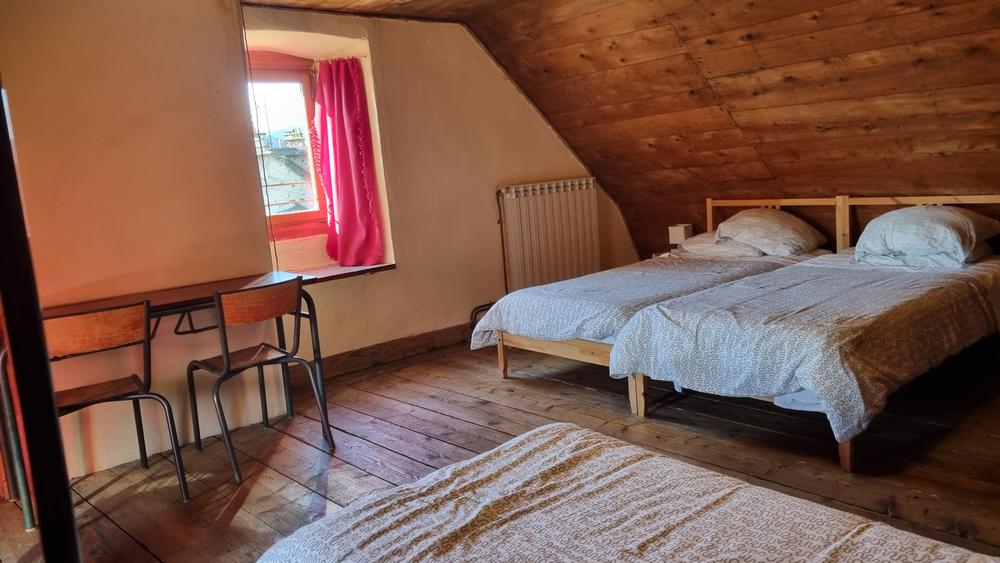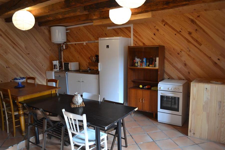 La cuisine et le salon, communs aux cinq chambres permettent de se restaurer, de regarder la télévision.