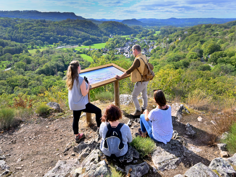 Magnifique point de vue sur la village d'Antignac et la chapelle du Roc Vignonnet accessible en prenant la direction (depuis Antignac) du moulin de Sauronnet ou via la randonnée PR 15 : Le rocher d'Agayrou.