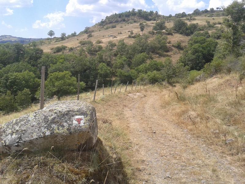 Départ - Depuis le panneau d’étape situé près du parking de l’église, partir à gauche et descendre tout droit. Après le cimetière, prendre le chemin à gauche puis rejoindre une route. La suivre à droite. Dans Besse, descendre la route à droite. Après la tour de Besse (P1 : tour du XVème siècle), au niveau de la ferme, continuer la descente par le chemin. Franchir le ruisseau de La Bave (P2 : ruine d’un moulin scierie). Monter directement dans la forêt, en ignorant les chemins latéraux, jusqu’à une route. La traverser et poursuivre la montée sur la droite jusqu’à l’orée de la forêt. 1 - Virer à gauche sur un large chemin. Au carrefour en T, partir à droite, passer Combaliboeuf et après 200 m sur la route, prendre le 2ème chemin à droite pour rejoindre Courteuge. Prendre à droite, passer devant le dolmen. 2 - Traverser le hameau de Courteuge (dolmen à main droite et four à pain). en descendant la route. 3 - Dans le virage après le hameau, monter le grand chemin à droite. Au carrefour continuer en face (vue sur le « pays coupé » et au loin sur la Margeride). On rejoint la PR verte venant de Combaliboeuf, descendre dans les gorges à flanc de coteau par un beau chemin. Après une belle descente, on rejoint Leyvaux au fond du vallon (vieux village et église avec clocher à peigne). 4 - À hauteur de la mairie, continuer à droite. 5 - Au carrefour des gorges d’Apcher, descendre le chemin caillouteux à gauche jusqu’au fond des gorges. Traverser successivement les ruisseaux d’Apcher et de Barthonnet qui confluent à cet endroit par les passerelles et monter en face à hauteur d’une ancienne entrée de mine (dépôts de croûtes carbonatées ferrugineuses déposées par une source d’eau minérale près de l’entrée). Remonter dans les bois sur environ 900 m (montée très raide), et au croisement, descendre à gauche. Continuer tout droit sur cette large piste boisée pendant environ 1,9 km en ignorant les intersections. Aboutir sur le plateau et rejoindre le village de Lussaud par la petite route. 6 - Passer à gauche de l’église puis prendre à droite face au pignon d’une grange, puis descendre à gauche par un grand chemin. Après un virage en épingle droite-gauche, on arrive sur une route (D 109). L’emprunter à droite sur 70 m. Franchir une chicane et descendre à gauche une sente qui traverse des prairies et continue tout droit jusqu’au fond du vallon (suivre l’alignement des arbres). 7 - Au fond du vallon, franchir un ru par la passerelle, en face, le long de la haie et remonter dans le bois, par une sente terreuse qui s’incurve sur la gauche avant de gagner un replat. Poursuivre dans la sapinière. À hauteur d’une prairie, franchir à 150 m d’intervalle 2 clôtures et continuer sur un chemin forestier dans la hêtraie. Vue à gauche sur les gorges et les plateaux environnants. 8 - Déboucher sur un grand chemin en terre. Le suivre à droite et atteindre le plateau pour rejoindre ensuite Anliac. Traverser le hameau, et à la sortie dans le virage, quitter la route pour prendre le chemin à gauche devant des bâtiments. Tourner à droite immédiatement après le 1er bâtiment, et suivre un ancien chemin jusqu’à une petite route. La suivre à gauche. 9 - Avant l’extrémité du plateau, le TVR quitte la route pour un bon chemin à droite qui traverse le plateau. Toutefois, pour accéder au gîte de Laurie, rester sur la route et descendre dans le village. Le gîte d’étape et le camping se situent en hors circuit, à 1,2 km : dans Laurie, avant d’atteindre l’église, prendre la ruelle à gauche puis suivre le chemin à droite qui longe une maison. Après un lacet, couper la route D 109 et suivre le chemin herbeux sur la gauche. Traverser de nouveau la route D 109 puis remonter en face la route communale qui mène au gîte puis au camping.