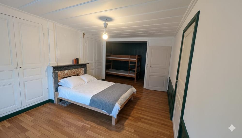 >>La maison dispose d’une entrée privée, avec un beau salon et séjour, idéal pour se retrouver autour de moments de convivialité, ainsi que d’une cuisine entièrement équipée permettant de préparer les repas en toute simplicité. Les cinq chambres, réparties de manière harmonieuse, proposent une capacité d’accueil généreuse et des couchages variés, adaptés aux séjours en groupe.