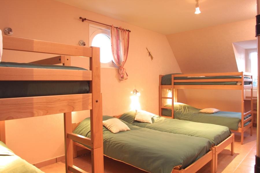 – de chambres de 2, 3, ou 4 lits individuels, un dortoir 6 places, WC et douche, privative par chambre.