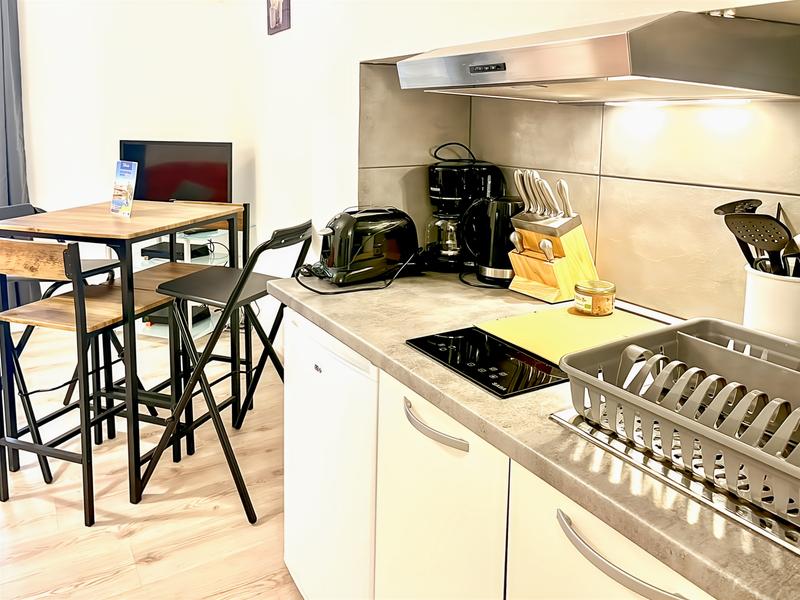 Cet appartement se trouve en plein cœur d'Aurillac dans les ruelles du centre-ville. Appartement de 35m² comprenant un lit double avec un canapé convertible, une cuisine, un toilette, une salle de bain (douche) et terrasse.