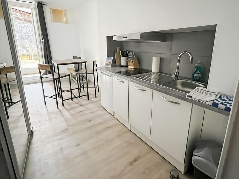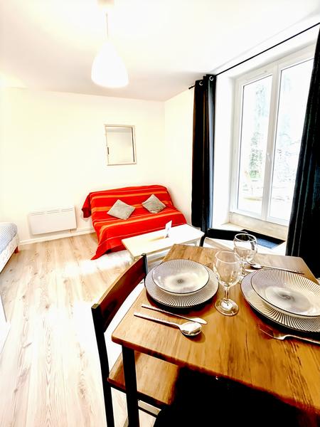 Cet appartement se trouve en plein cœur d'Aurillac dans les ruelles du centre-ville. Appartement de 35m² comprenant un lit double avec un canapé convertible, une cuisine, un toilette, une salle de bain (douche) et terrasse. Le logement est refait à neuf. Vous disposez d'une porte sécurisée, avant d'accéder au logement. Un escalier permet de le rejoindre. Vous disposez d'un parking payant à 100 mètres. logement se trouvant en plein centre ville d'Aurillac. Vous avez un accès direct aux commerces de la ville.