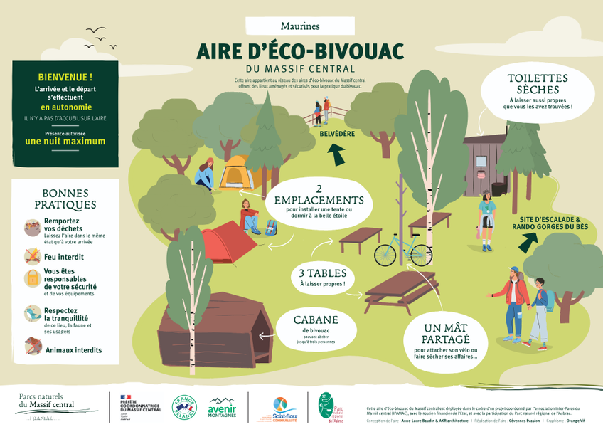 - Aire d'éco-bivouac de Morsanges : possibilité de se poser une nuit. emplacements et 1 abri (3 pers max), toilettes sèches, tables de pique-nique. Règles à respecter : feu interdit sur le site, chiens non admis, déchets à reprendre avec soi.