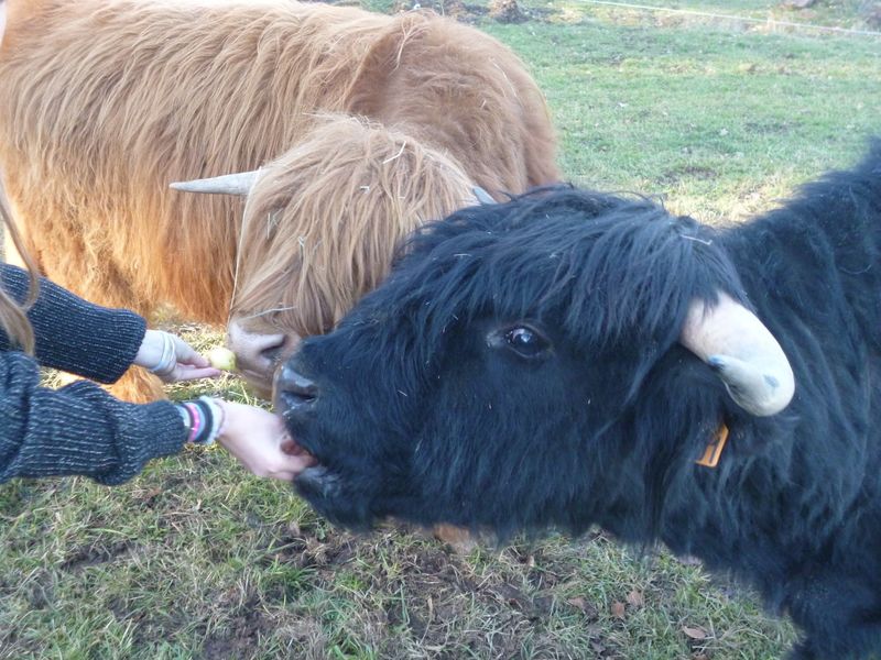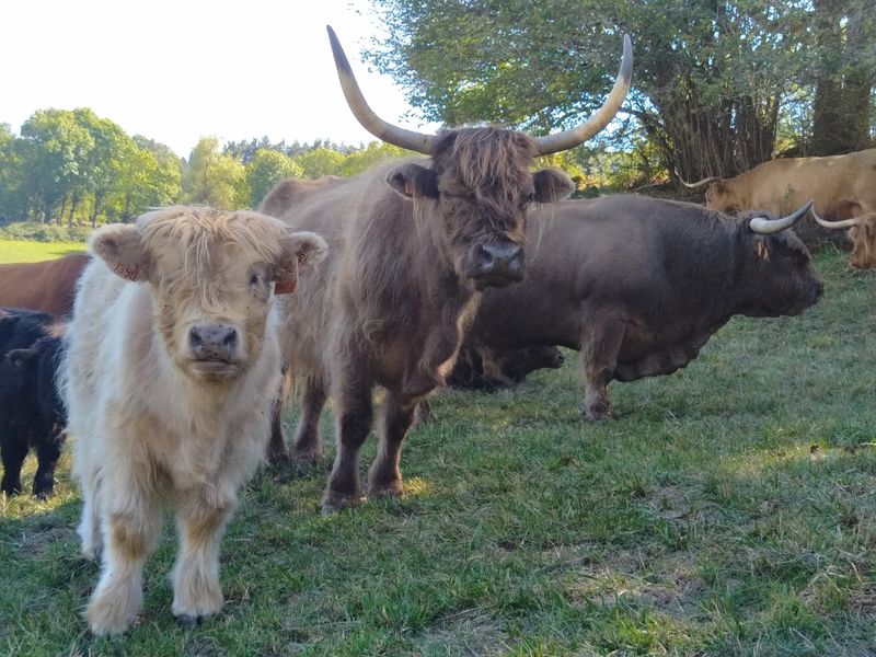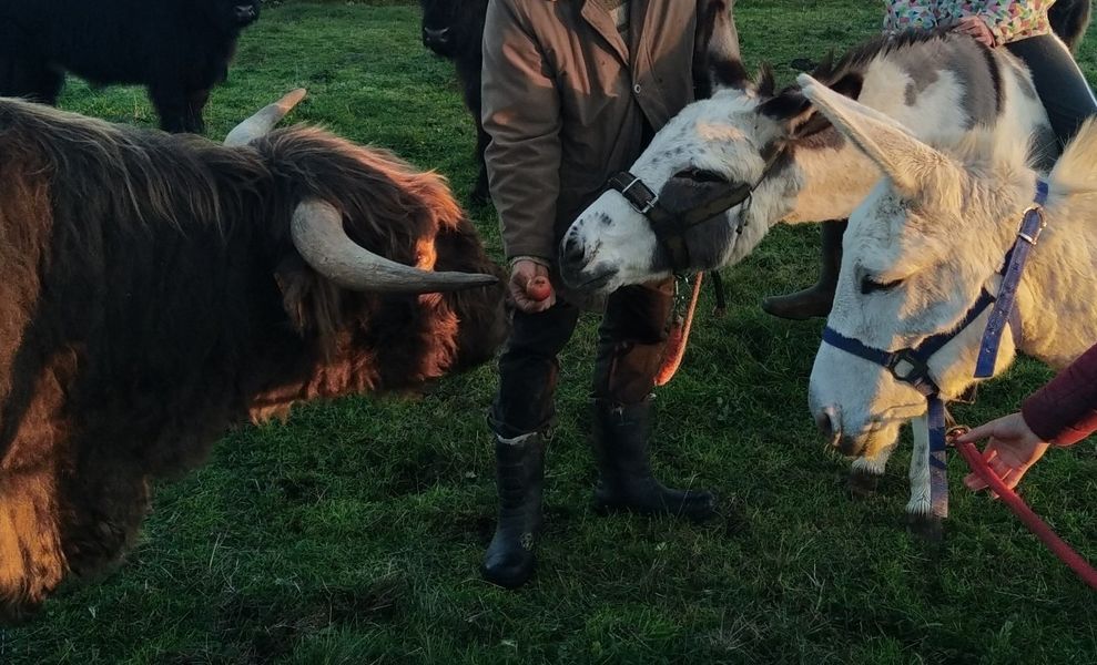 Vous pourrez rencontrer également les animaux de la ferme : vaches Highland, cochons Kune Kune, chèvres, ânes, poules, canards, dindons, cochons d'inde, lapins.
