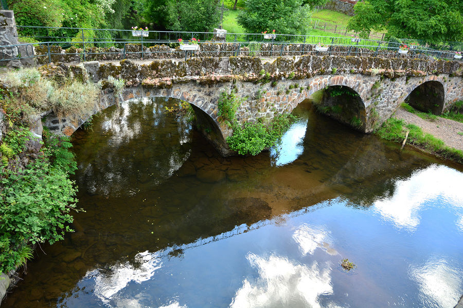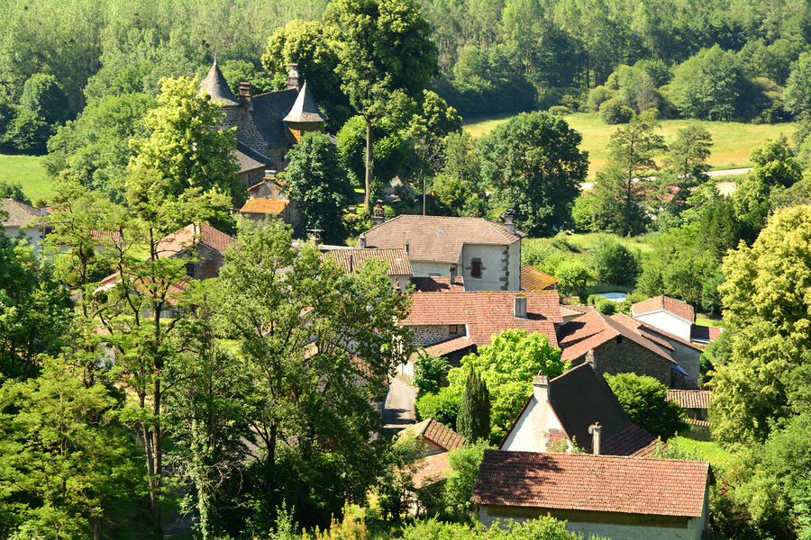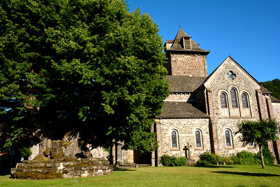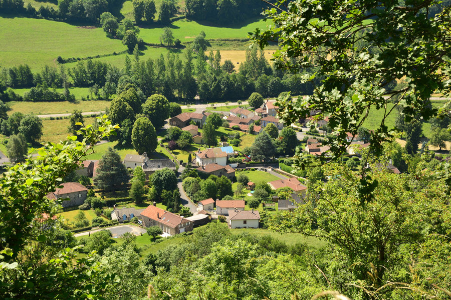 Départ sur le parking devant l’église, face à l’énorme tilleul Sully. Partez en direction de la rivière la Jordanne et juste avant le pont, prenez à droite. Au second carrefour, continuez sur la gauche sur un bon chemin et allez tout droit pour quitter le bourg. Celui-ci s’élève pour rejoindre une large piste. Descendez-la jusqu'à un virage prononcé.