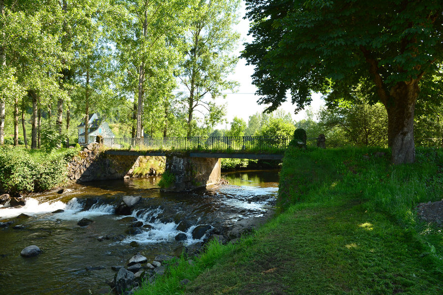 Quittez cette piste pour monter à droite dans un sentier qui débouche sur une seconde piste. Poursuivez tout droit sur le chemin qui rejoint la Jordanne au village de Rouffiac.
