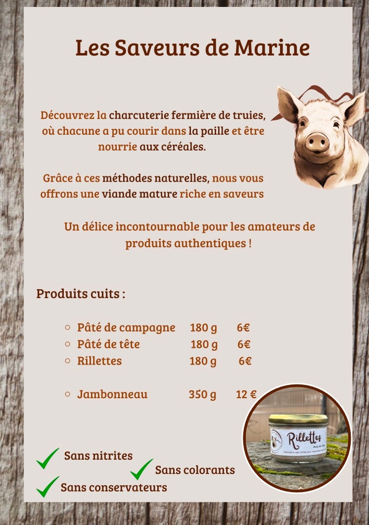 Marine transforme les truies en « Saveurs de Marine », des charcuteries de porcs fermiers, issues de recettes familiales