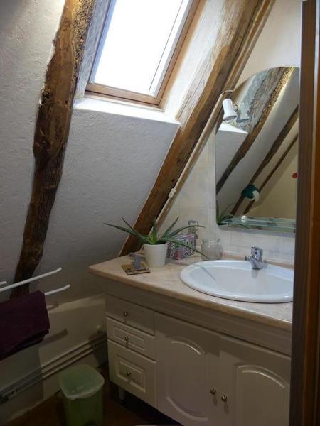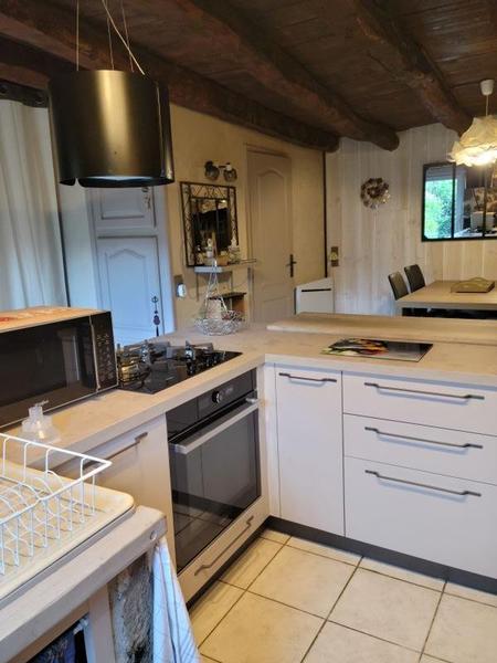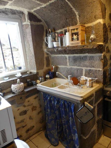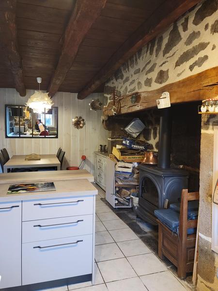 La maison est sur 3 niveaux et a gardé tout son charme avec son poêle à bois dans le cantou (cheminée) et ses pierres.