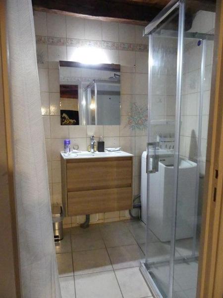 Au rez de chaussée, elle est composée d'une pièce à vivre avec un coin cuisine alliant le moderne et l'ancien, une salle d'eau avec douche et WC ainsi qu'un lave linge. Vous y trouverez tout l'équipement pour cuisiner avec de quoi démarrer votre séjour.