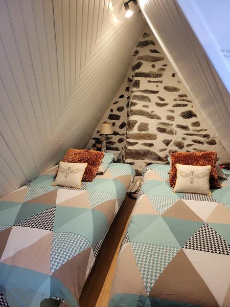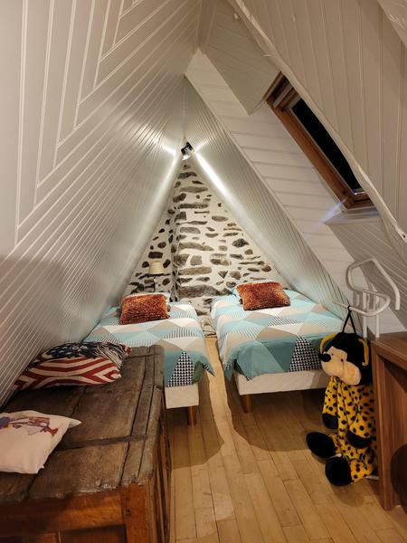 Au 2ème étage, une chambre mansardée avec 2 lits individuels électriques, quelques jouets.
