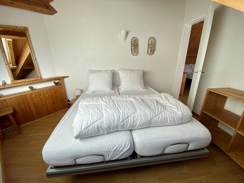 Couchages : 1 chambre en mezzanine avec 1 lit 140 – 1 chambre séparée avec 1 lit 160 électrique – 1 canapé clic clac dans le séjour