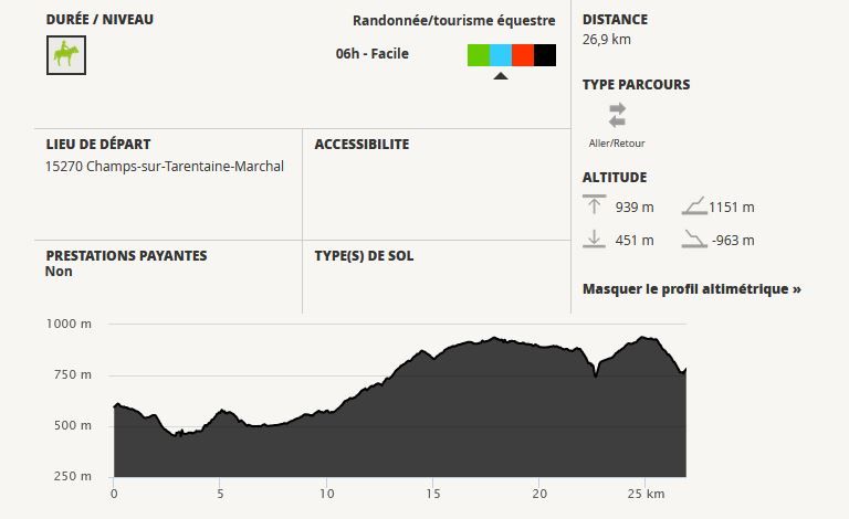 Au départ de Champs-sur-Tarentaine-Marchal et d'une distance de 26.9km, l'itinéraire permet de rejoindre le Viaduc de Barajol et l'itinéraire "Cézallier - Limon" d'une durée de 4 à 5 jours.
