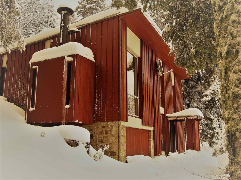 Grand chalet de style contemporain de 120m2 avec terrasse, jardin et cheminée.
