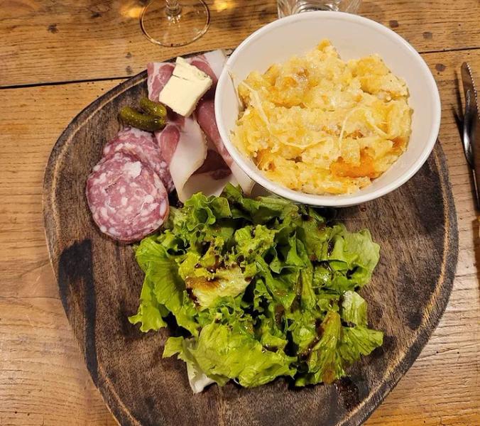 Nous vous proposons une restauration rapide avec des produits locaux: assiette de charcuterie, fromage, croque monsieur, gaufres et crêpes. (truffade, pounti, bourriols sur commande)