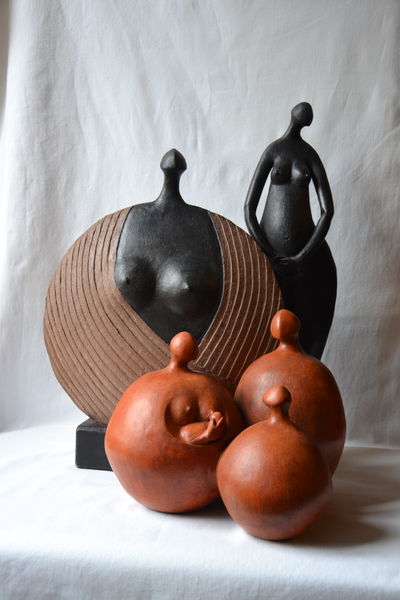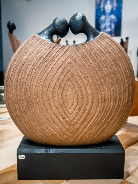 Au gré de ses inspirations, Mechtild crée des sculptures dans différentes sortes de grés, laissant les terres brutes ou jouant avec des mélanges et superposition de cires de couleurs.
