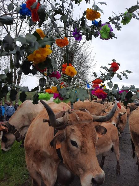 Montée des vaches en transhumance, de Cézens à Arjaloux.