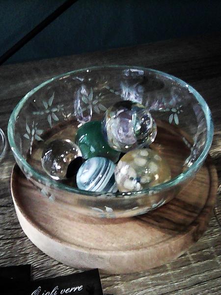 Diverses techniques utilisées ; la taille, la gravure à la roue, la gravure, le sablage, thermoformage, fusing et verre filé. Personnalisation et réparations, travaux sur demande.