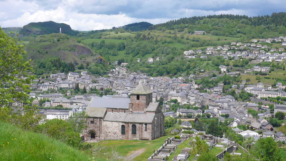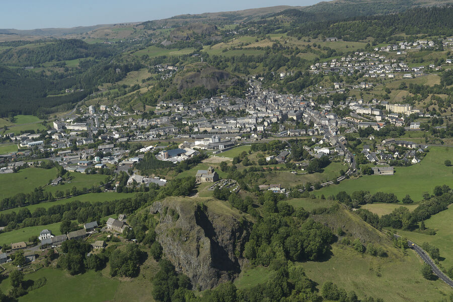 Le Rocher de Bonnevie en surplomb de la cité médiévale de Murat dévoile de remarques orgues basaltiques.