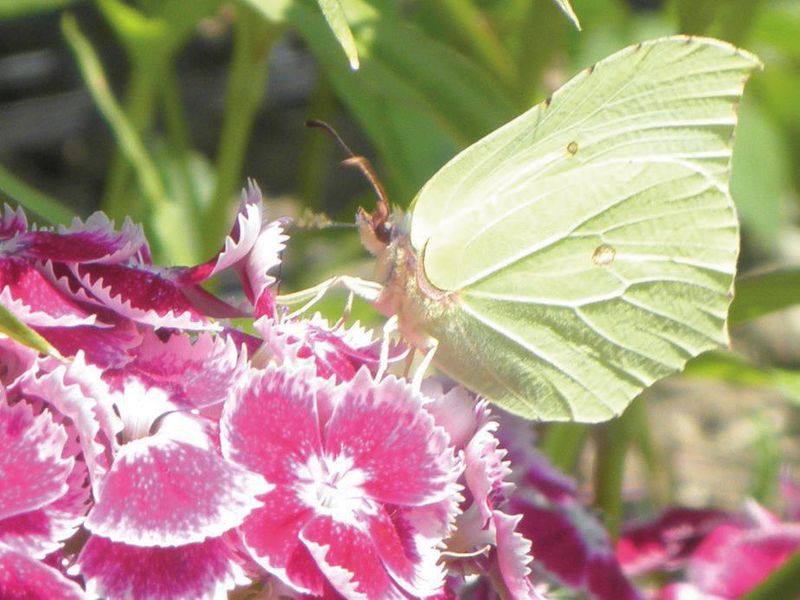 Nom scientifique : Gonepteryx rhamni. Petit insecte diurne aux ailes vertes et jaunes avec un point rouge ou brun. Envergure de 22 à 55 mm. Habitat : Orée des forêts, friches, jardins, plaine, montagne. Europe, Afrique du Nord, Amérique du Sud, Asie. Alimentation : Rhamnus, Frangula.