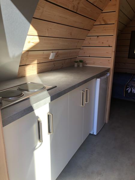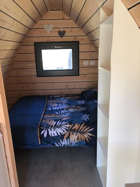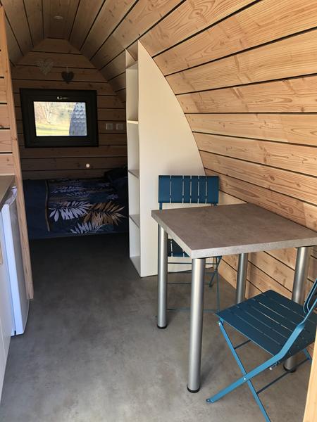 Les "pignes" : petits "cocon" de 11m² tout en bois pour une ou deux personnes sont équipés d'un lit 140 avec couette et oreillers. Possibilité de draps en location, kitchenette, vaisselle, table, chaise, réfrigérateur. La pigne ne possède pas d'arrivée d'eau, vous avez accès aux sanitaires du camping à proximité.