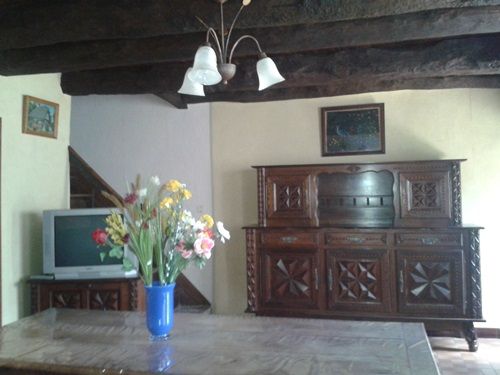 Au rez-de-chaussée : cuisine équipée (réfrigérateur, four, micro-onde, cuisinière, lave-vaisselle, lave-linge…), un salon séjour avec TV écran plat et cuisinière à bois. WC indépendant.