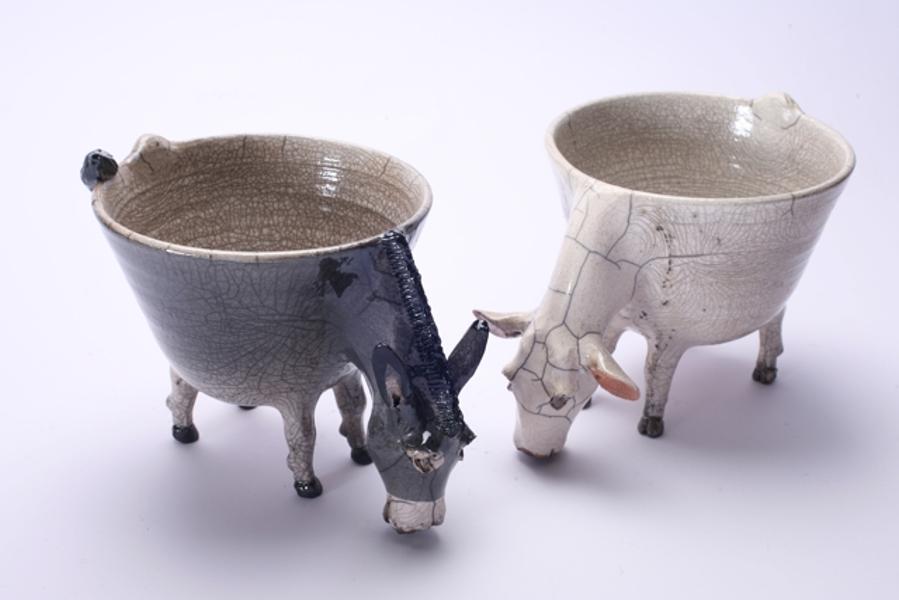 Depuis plus de 25 ans, l’atelier travaille sur le thème animalier. Bols moutons, vaches, poules, canards, lapins… chaque pièce est unique, réalisée entièrement à la main, à partir de gré chamotté.