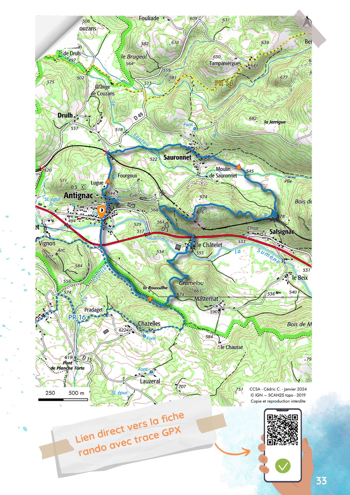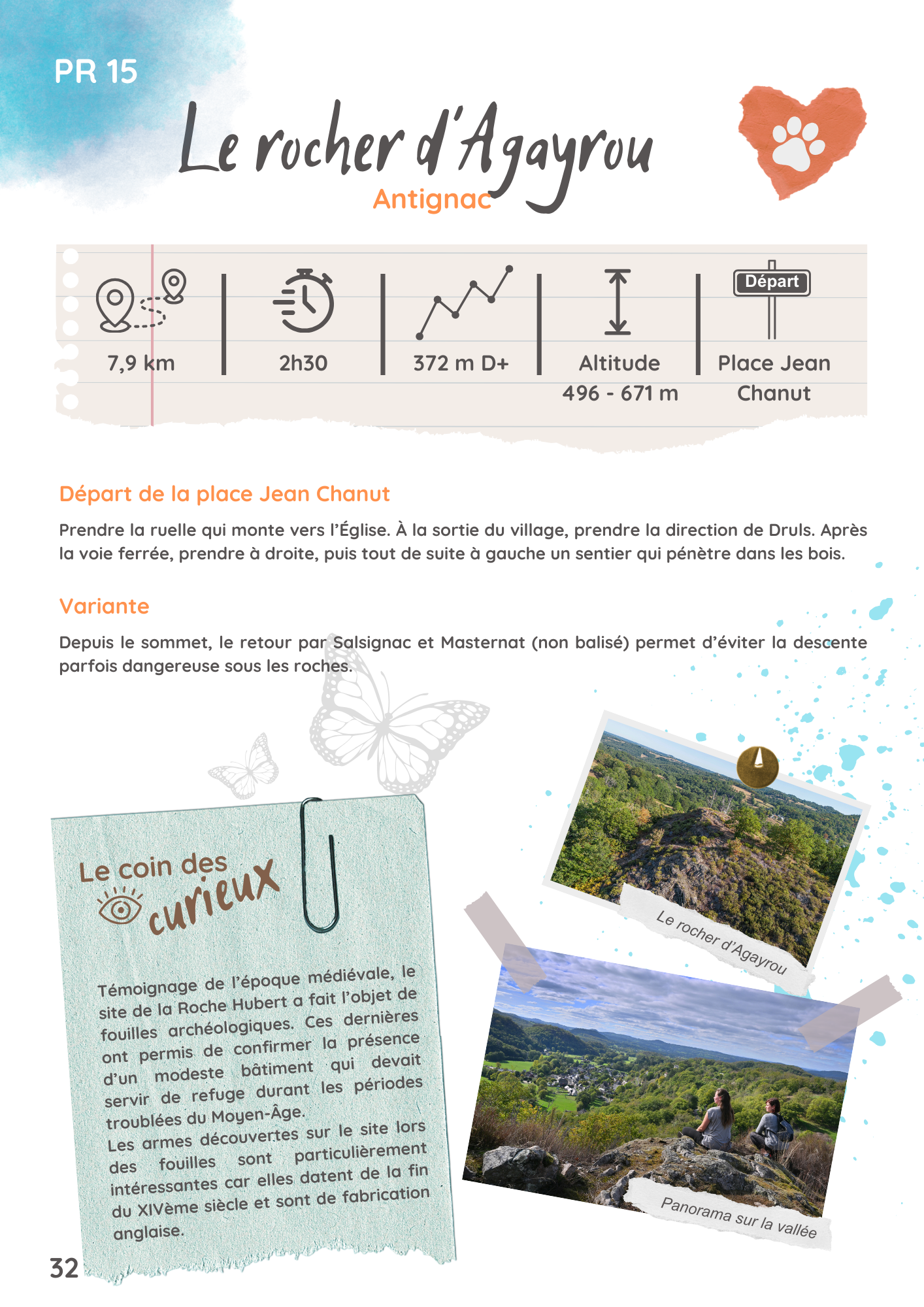 Variante : Depuis le sommet, le retour par Salsignac et Masternat (non balisé) permet d’éviter la descente parfois dangereuse sous les roches.